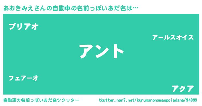 | ポケモン風あだ名 | 『ヒアオキミエ』『アオチュウ』 |