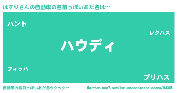 | 男性向けラノベタイトル風あだ名 | 『魔弾の王とはすり』『はすりの憂鬱』 |