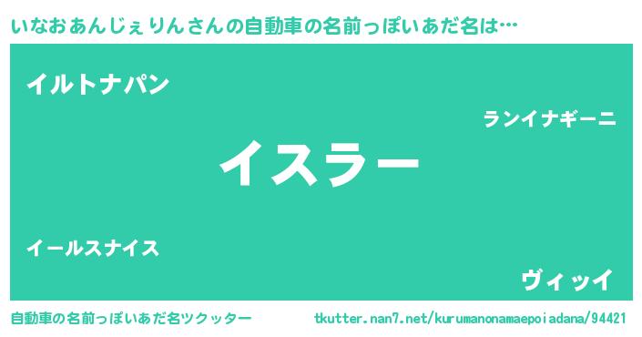 | 欧米人風あだ名 | 『いなおあんじぇりんクリステル』 |