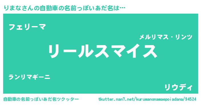 | 男性向けラノベタイトル風あだ名 | 『転生したらりまなだった件』 |