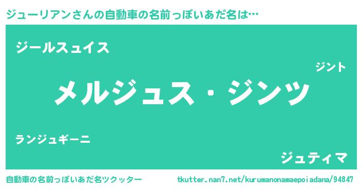 | 男性向けラノベタイトル風あだ名 | 『Re:ジューリアンから始める異世界生活』 |