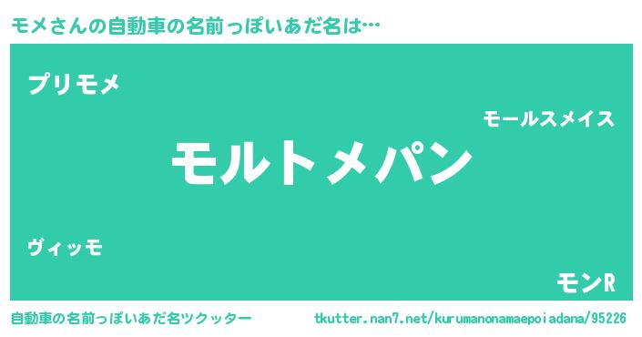 | 女子向けラノベタイトル風あだ名 | 『モメは平凡を望む』『死神モメの再婚』 |