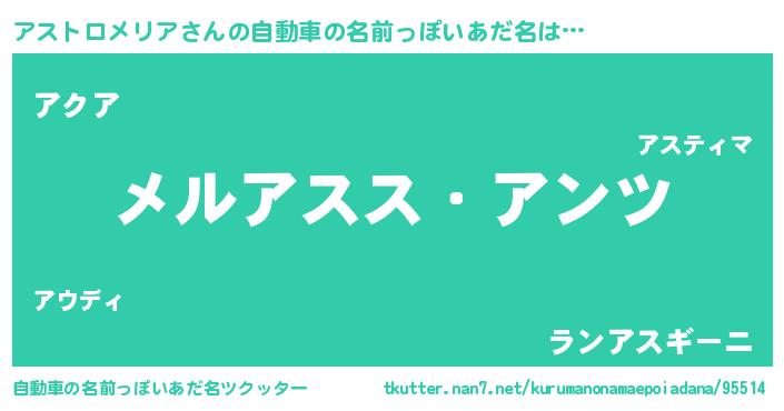 | 男性向けラノベタイトル風あだ名 | 『Re:アストロメリアから始める異世界生活』 |