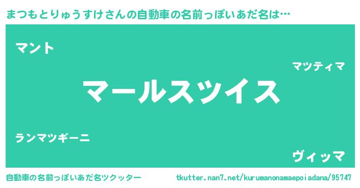 | 女子向けラノベタイトル風あだ名 | 『まつもとりゅうすけの玉の輿計画!』 |