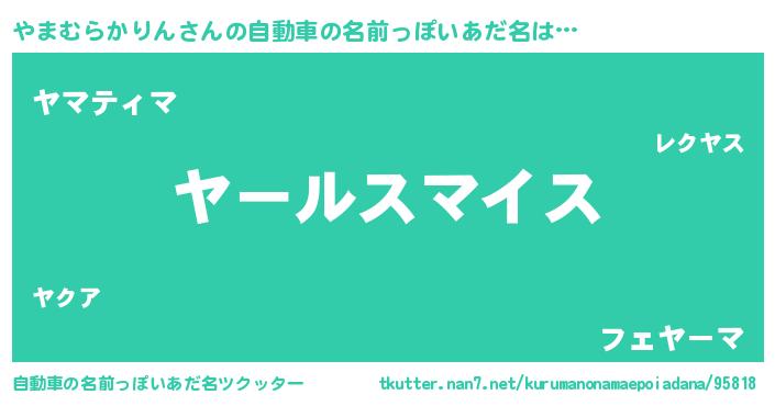 | 男性向けラノベタイトル風あだ名 | 『やまむらかりん~年齢イコール彼女いない歴の魔法使い~』 |