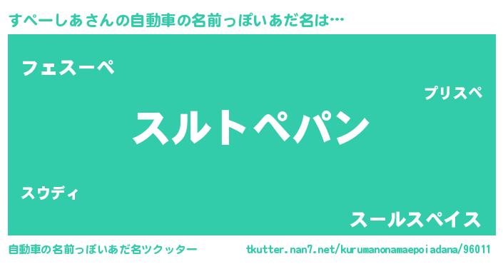 | 欧米人風あだ名 | 『ウサインすぺーしあ』 |