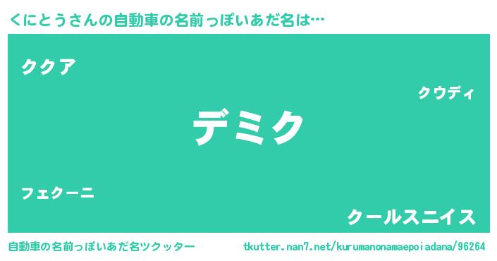 | 男性向けラノベタイトル風あだ名 | 『くにとうという概念が存在しない退屈な世界 』 |