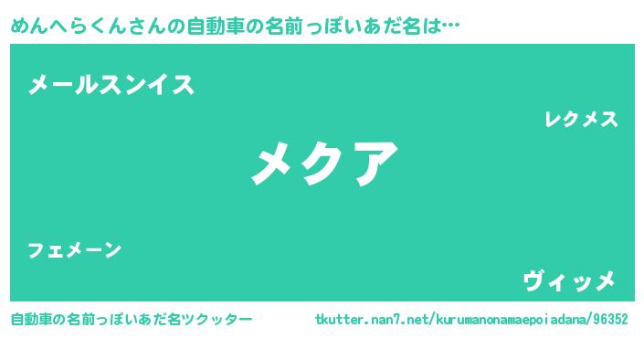 | 欧米人風あだ名 | 『めんへらくんクリステル』 |
