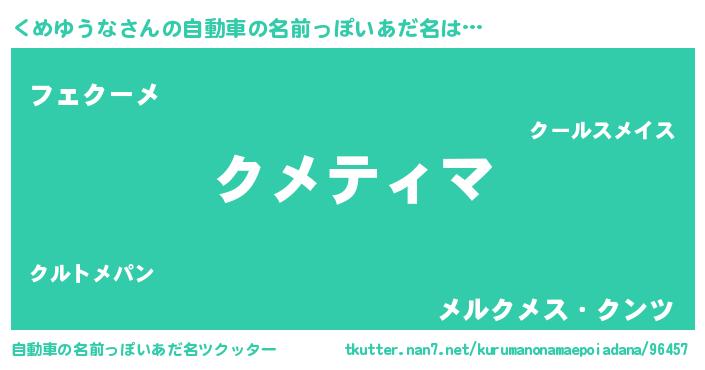 | ヒーロー風カッコイイあだ名 | 『スーパークメユウナ』『銀牙騎士クメ』 |