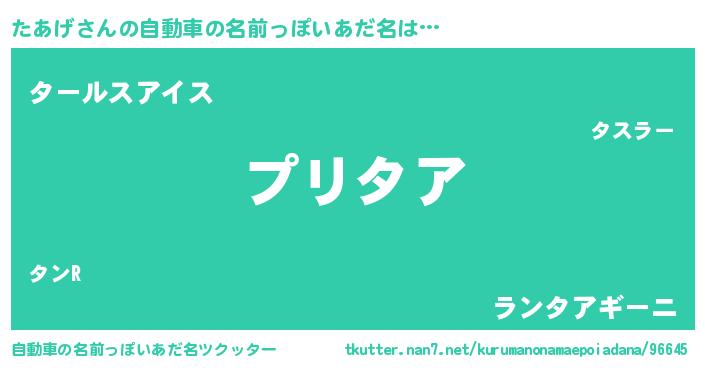 | 女子向けラノベタイトル風あだ名 | 『(仮)たあげのやんごとなき事情』 |