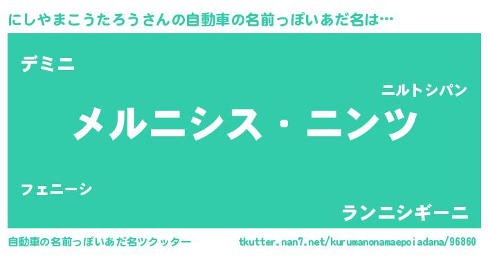 | 男性向けラノベタイトル風あだ名 | 『Re:にしやまこうたろうから始める異世界生活』 |