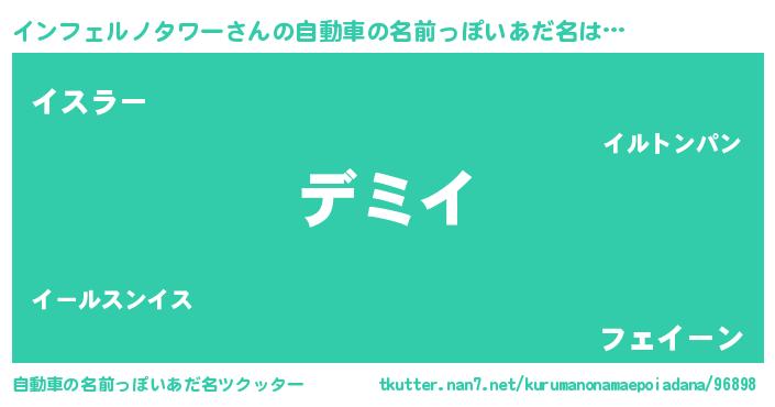 | 女子向けラノベタイトル風あだ名 | 『異世界で失敗しない100のインフェルノタワー』 |