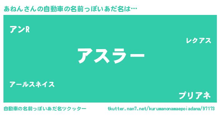 あねんさんの自動車の名前っぽいあだ名をツクッター!