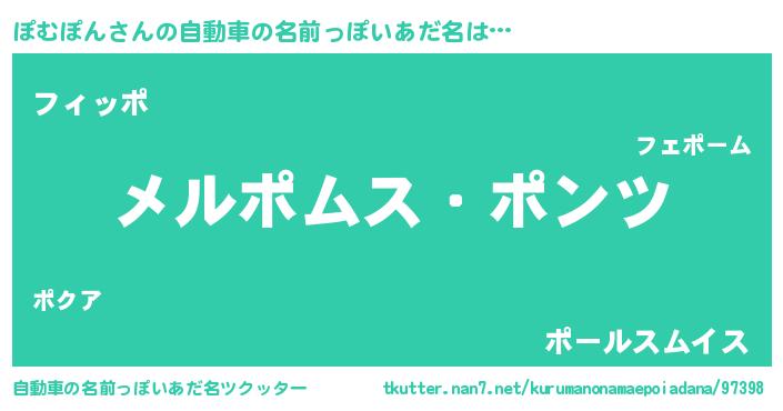 | 男性向けラノベタイトル風あだ名 | 『Re:ぽむぽんから始める異世界生活』 |