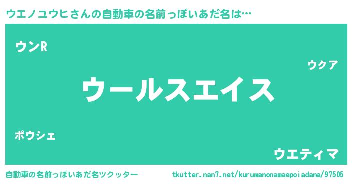 | 女子向けラノベタイトル風あだ名 | 『ウエノユウヒの玉の輿計画!』 |