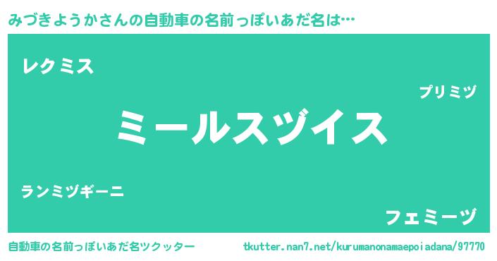 | 男性向けラノベタイトル風あだ名 | 『ミヅキヨウカスレイヤー』 |