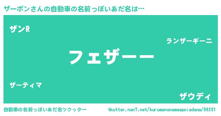 | 男性向けラノベタイトル風あだ名 | 『緋弾のザーポン』『魔弾の王とザーポン』 |