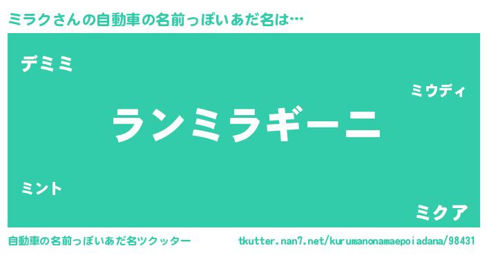 | ポケモン風あだ名 | 『ミラゴンZ』『ゼニミラ』『ミーライ』 |