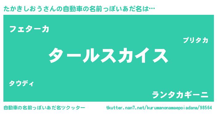 | 男性向けラノベタイトル風あだ名 | 『タカキシオウスレイヤー』 |