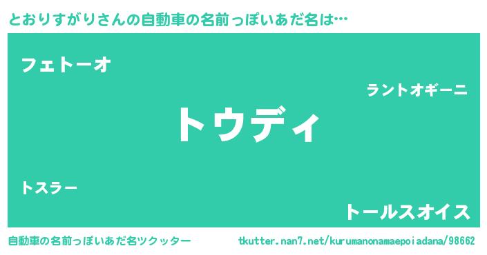 | ヒーロー風カッコイイあだ名 | 『仮面トオダー』『ネオトオリスガリ』 |