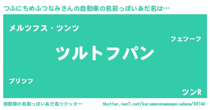 | 胡散臭い通販商品みたいなあだ名 | 『信頼と実績のサプリメント…その名も「つふにちめふつなみ」』 |