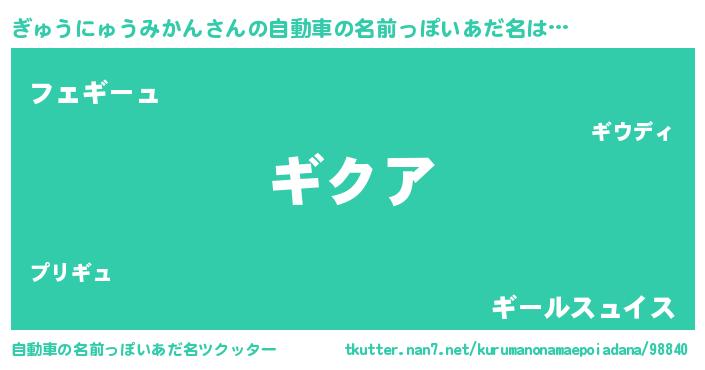 | 欧米人風あだ名 | 『ぎゅうにゅうみかんクリステル』 |