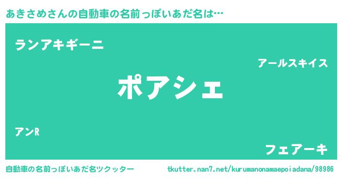 | 意味不明あだ名 | 『住所不定無職あきさめ(71歳)』 |