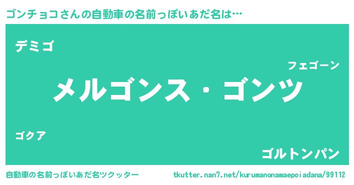 | 男性向けラノベタイトル風あだ名 | 『Re:ゴンチョコから始める異世界生活』 |