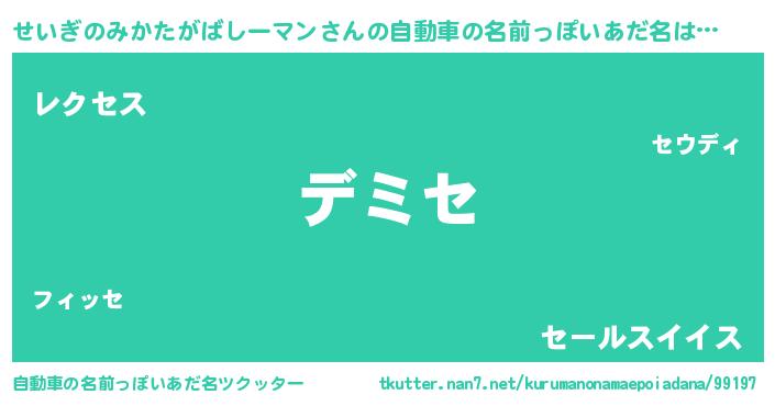 | 胡散臭い通販商品みたいなあだ名 | 『絶対に幸福をもたらす水素水…その名も「せいぎのみかたがばしーマン」』 |