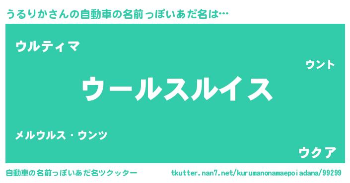 | 男性向けラノベタイトル風あだ名 | 『うるりか~年齢イコール彼女いない歴の魔法使い~』 |