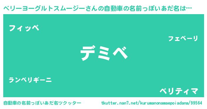 | 女子向けラノベタイトル風あだ名 | 『異世界で失敗しない100のベリーヨーグルトスムージー』 |