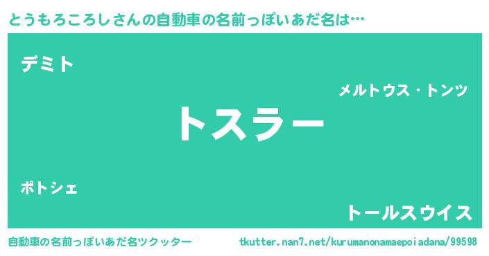 | ポケモン風あだ名 | 『トウモダネ』『ゼニトウ』 |