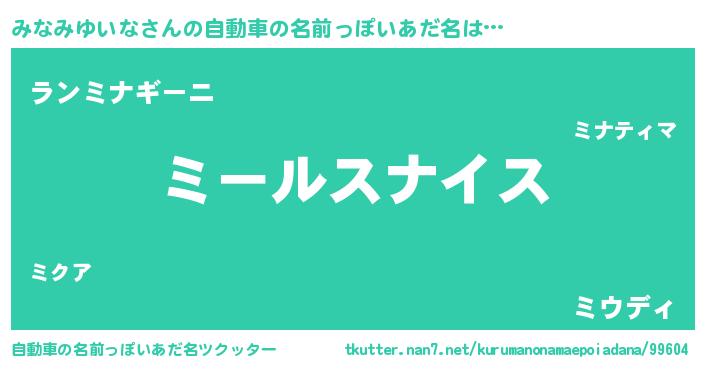| 男性向けラノベタイトル風あだ名 | 『ミナミユイナスレイヤー』 |