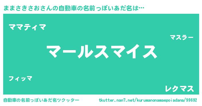 | 男性向けラノベタイトル風あだ名 | 『ママサキサオスレイヤー』 |