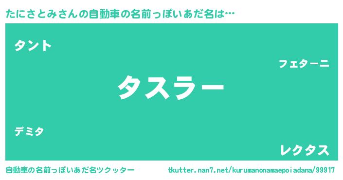 | ポケモン風あだ名 | 『タニサダネ』『ヒタニサトミ』 |