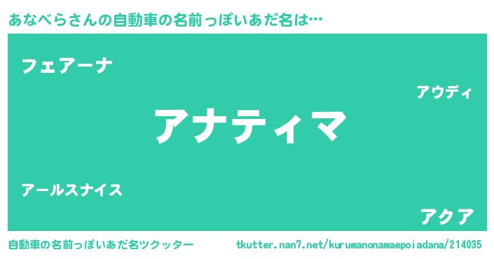 | ファンタジー風あだ名 | 『アナフェル』『カークアナラー』 |