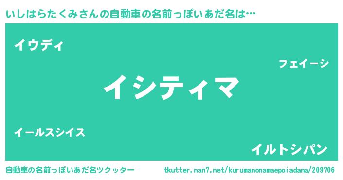 | 男性向けラノベタイトル風あだ名 | 『イシハラタクミアートオンライン』 |