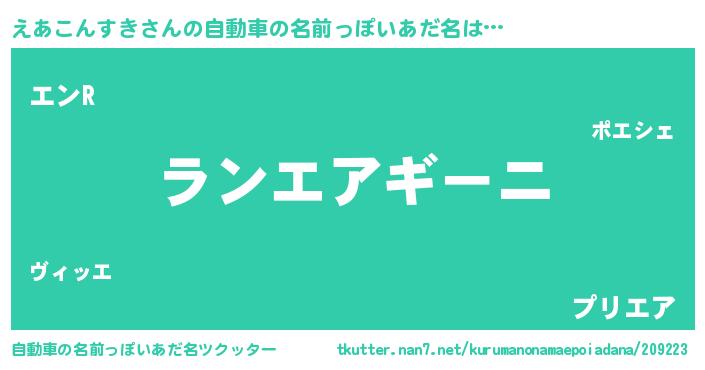| 欧米人風あだ名 | 『アンジェラ・えあこんすき』 |