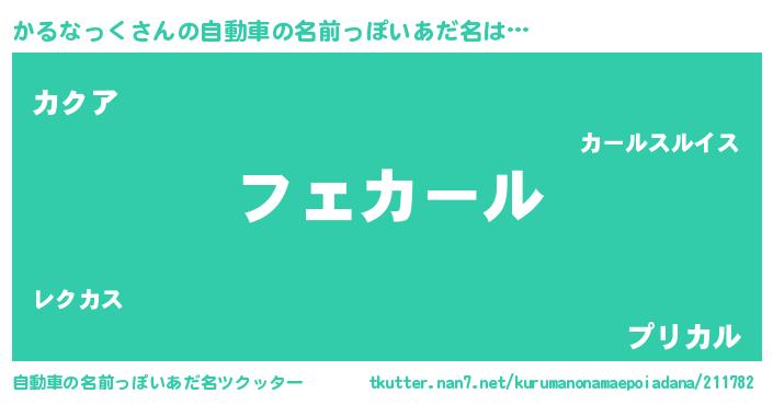 | 男性向けラノベタイトル風あだ名 | 『うちのかるなっくが世界を掌握している!』 |