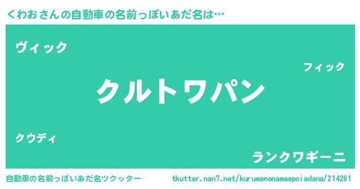 | 男性向けラノベタイトル風あだ名 | 『ダンジョンにくわおを求めるのは間違っているだろうか』 |