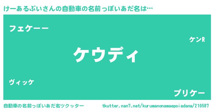 | ヘコむあだ名 | 『けーふぇ~』『けーあるぶい(震え声)』 |