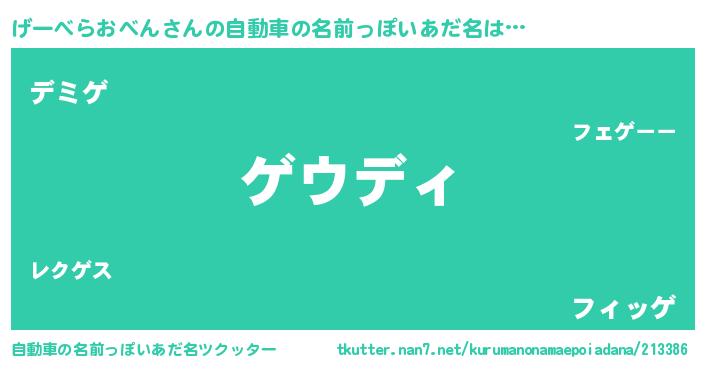 | 意味不明あだ名 | 『住所不定無職げーべらおべん(3歳)』 |