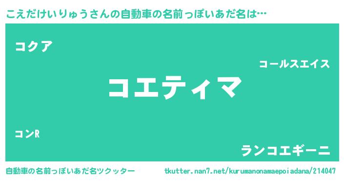 | ファンタジー風あだ名 | 『コエフェル』『ユリコエヴァット』 |