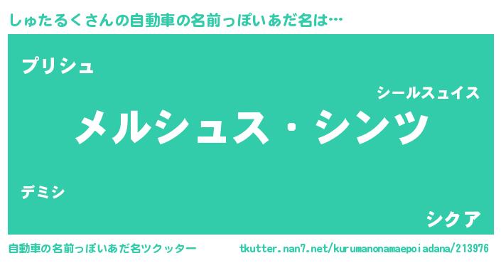 | 男性向けラノベタイトル風あだ名 | 『Re:しゅたるくから始める異世界生活』 |