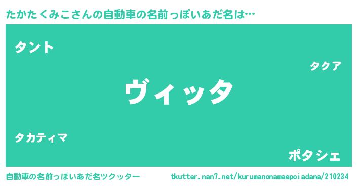 | 女子向けラノベタイトル風あだ名 | 『たかたくみこの契約王妃』 |