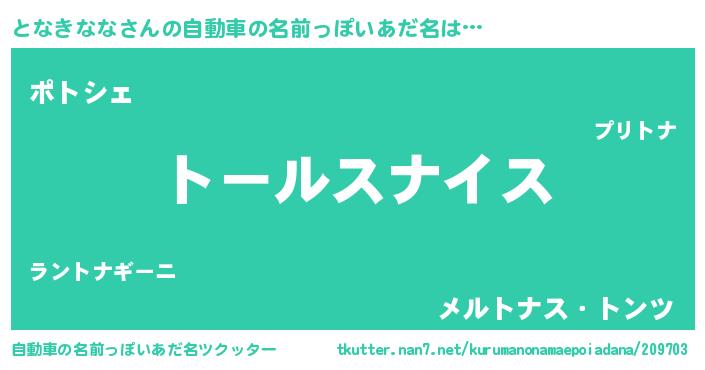 | ヒーロー風カッコイイあだ名 | 『仮面トナダー』『最強戦士トナキナナ』 |