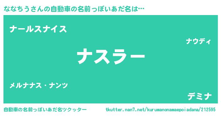 | 男性向けラノベタイトル風あだ名 | 『うちの娘の為ならば、俺はもしかしたらななちうも倒せるかもしれない。』 |