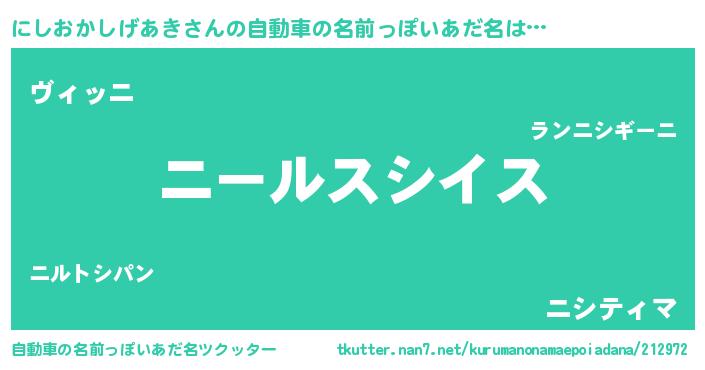 | 男性向けラノベタイトル風あだ名 | 『ニシオカシゲアキスレイヤー』 |
