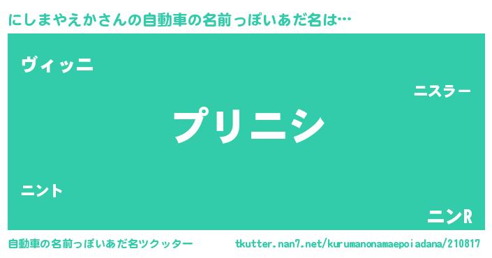 | 胡散臭い通販商品みたいなあだ名 | 『必ず成功する霊験あらたかなお札…その名も「にしまやえか」』 |
