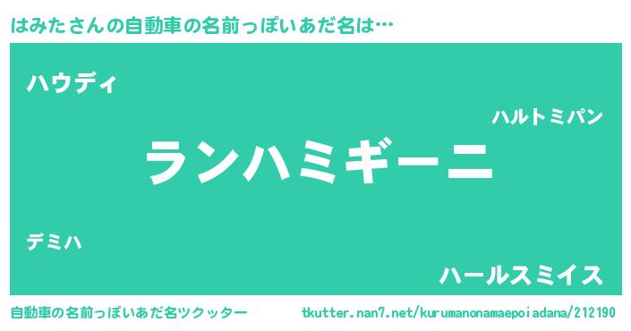 | 欧米人風あだ名 | 『アンジェラ・はみた』『ウサインはみた』 |